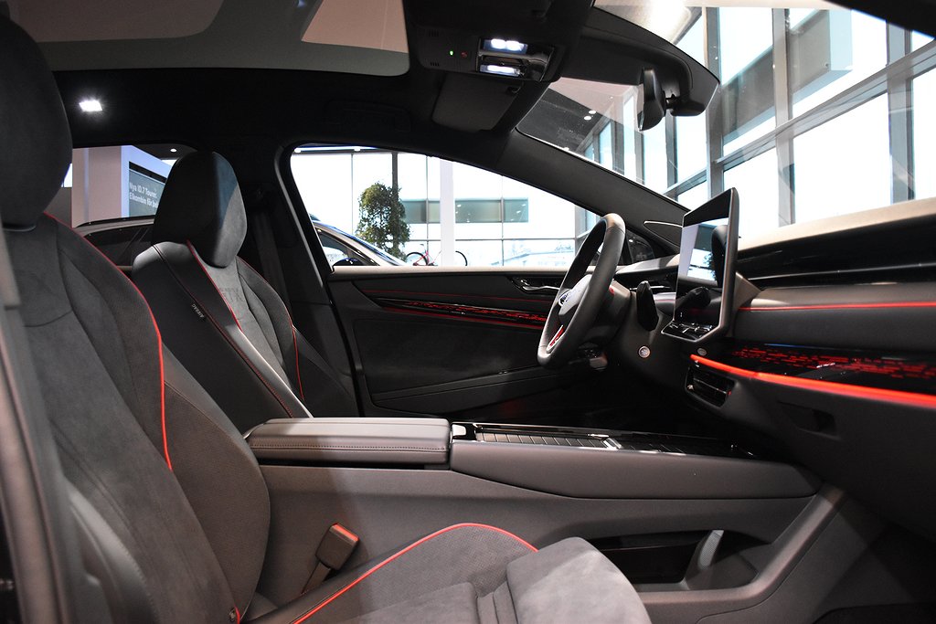 ID.7 GTX är en visuell och teknologisk mästerverk. Med sin slanka, aerodynamiska silhuett och sportiga detaljer, fångar den uppmärksamheten vid första ögonkastet. De sofistikerade linjerna och den karakteristiska GTX-emblemen speglar bilens kraftfulla prestanda. Under huven hittar du en elektrisk drivlina som kombinerar rå kraft med precision. ID.7 GTX är utrustad med dubbla motorer och fyrhjulsdrift, vilket ger en blixtsnabb acceleration och imponerande väghållning. Med en räckvidd på upp till 568 km på en enda laddning kan du köra längre och uppleva mer utan att kompromissa.
