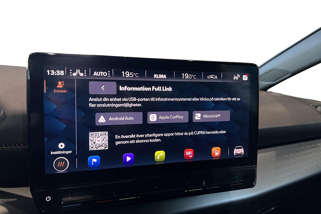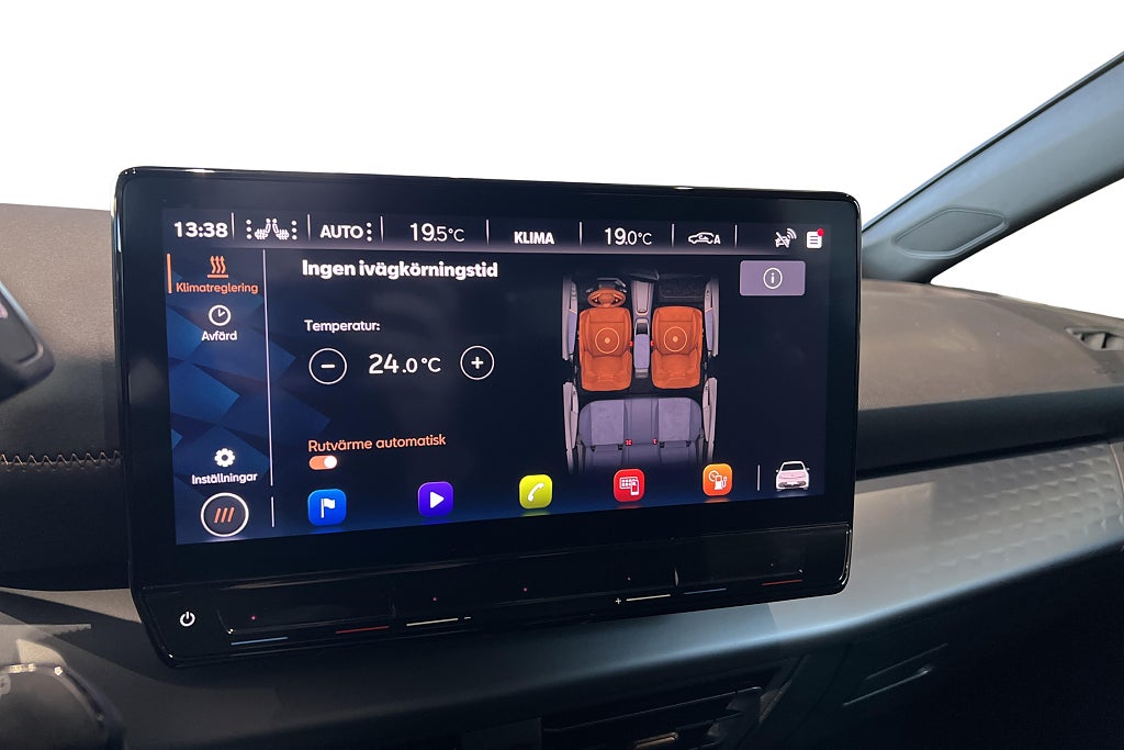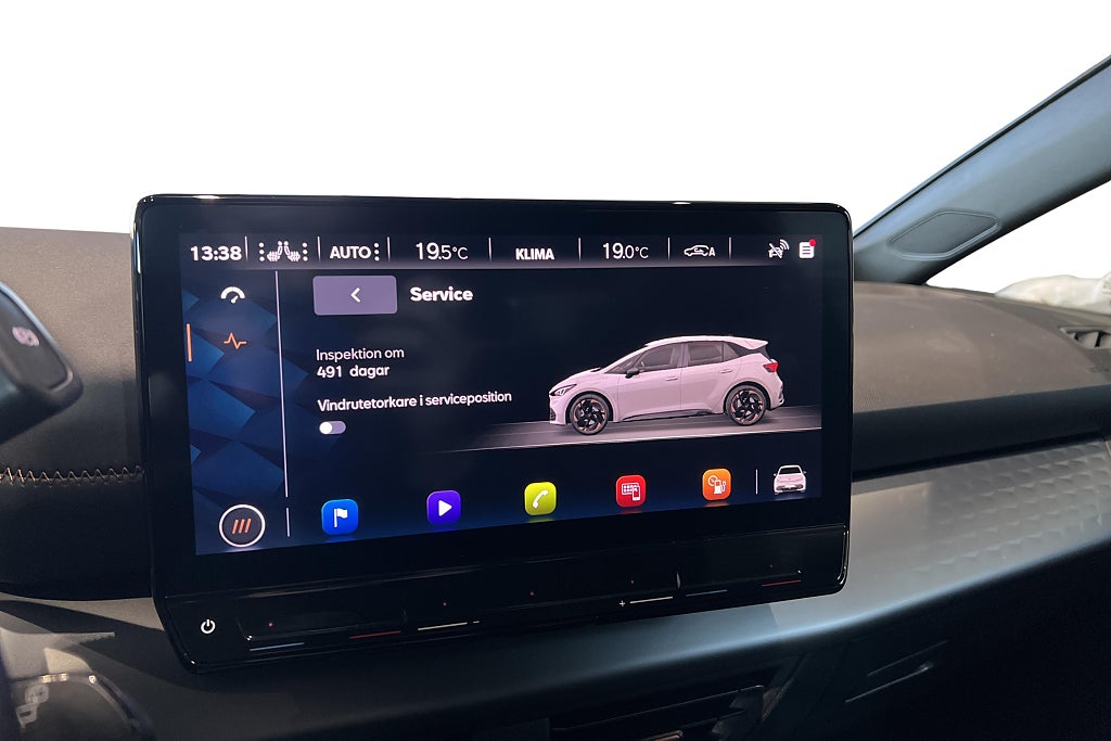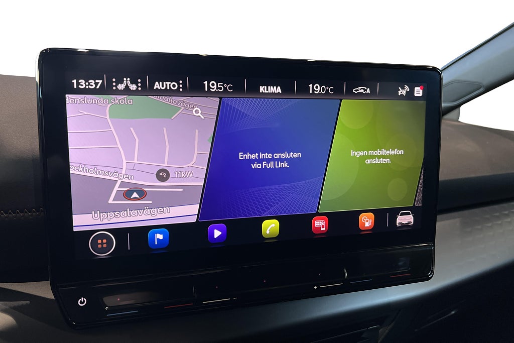 Bilen är utrustad med bland annat, Förvärmning av kupén genom app/tidur, Backkamera, Adaptivfarthållare samt Apple Carplay & Android Auto.