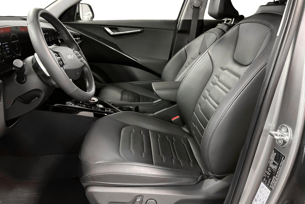 Generösa mått exteriört betyder ökad komfort interiört. Interiören i Niro är framtagen i balans mellan spännande design och tekniska lösningar så som ergonomiska stolar, generöst benutrymme i baksätet och passagerarstol med viloläge kompletteras med dubbla välvda 10.25-tumsskärmar.